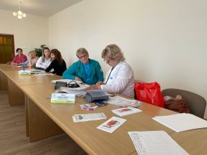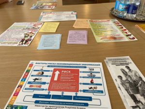 В ходе акции «Здоровое сердце – залог успеха!» и «Предотврати болезнь – выбери жизнь!» из 96 участников проконсультировано врачом-кардиологом 23 (24,0%) работника, врачом общей практики – 22 (23,0%), врачом-неврологом – 23 (24,0), врачом-хирургом – 28 (29,2%). Впервые выявлено с повышенным артериальным давлением (далее – АД) – 1 (1,04%) человек, которому предложена госпитализация в стационар. Оперативное лечение с диагнозами (кератопаппиломы, гигрома, новообразование молочной железы) предложено 10 (10,4%) работникам, выявлено с избыточной массой тела 15(15,6%) человек и 18 (18,8%) – с низкой физической активностью. Направлен на фиброгастродуоденоскопипию (далее – ФГДС) 1 (1,04%) нуждающийся с подозрением на язвенную болезнь желудка. Требуется консультация у узких специалистов (нейрохирург, эндокринолог) 5(5,2%) работникам. Направлено на биохимический анализ крови 4 (4,2%) участника акции, ультразвуковое исследование брахиоцефальных артерий (далее — УЗИ БЦА) — 4 (4,2%) человека.