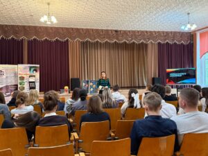 Перед целевой аудиторией — учащимися СШ №№ 3, 4, 6, выступила врач по медицинской профилактике Кобринской ЦРБ Светлана Васильева. Она рассказала ребятам о ходе реализации проекта, что делается для улучшения здоровья населения, формирования здоровой и безопасной среды, снижения заболеваемости. Гости — психологи Брестского областного центра гигиены и эпидемиологии Вадим Ертахо, Вероника Конева и врач по медицинской профилактике Валентина Машенская подробно остановились на пагубных привычках, которые легко приобретают подростки, а потом не могут от них избавиться.